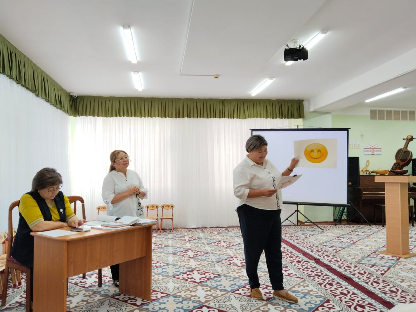 Кеңес педагог-психолог Мусаинова А.А. жүргізген «Педагогикалық күн шуағы» атты тренинг-ойынмен басталды. Бұл жаттығу жылы атмосфера құруға, ұжымды біріктіруге және жаңа оқу жылына оң көзқарас қалыптастыруға ықпал етті.