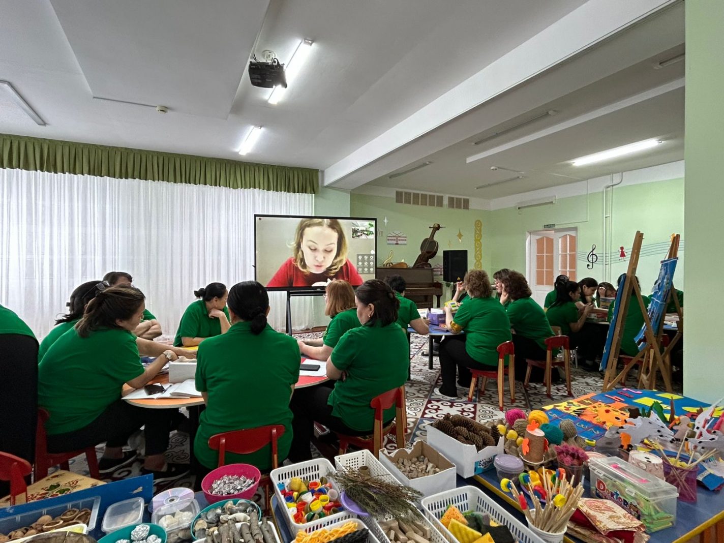 Педагогтер ата-аналармен тиімді өзара іс-қимыл тәжірибелерімен бөлісіп, балалардың шығармашылық қабілеттерін дамытуға, эстетикалық талғамын қалыптастыруға және мәдени құндылықтарға баулуға бағытталған ынтымақтастықтың тәжірибелік формаларын ұсынды. Бірлескен жобалар, көрмелер, шеберлік сағаттары және отбасылық шығармашылық бастамалар мысалдары қарастырылды. Өз тәжірибелерімен педагогтер: Калина Айгерим Сериковна, Кенбаева Гульхана Даулетовна, Мусаинова Асем Амангельдиновна бөлісті.