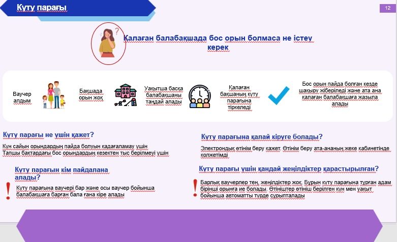 Ата-ана таңдайды – ата-ана қалаған балабақшаны таңдайды.