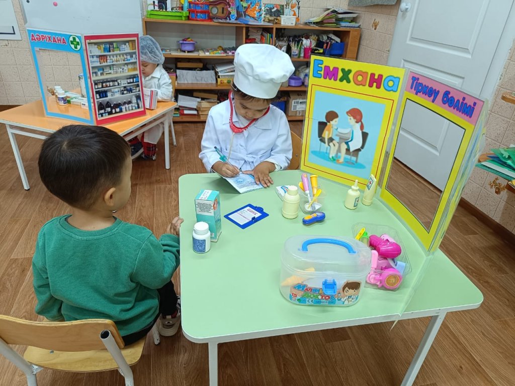 Біздің балабақшада тәрбиешілер балаларға еңбектің қадірін түсіндіру, қол еңбегі арқылы олардың шығармашылық қабілеттерін дамыту мақсатында түрлі іс-шаралар өткізіп келеді. Бұл жұмыстар күнделікті өмірмен тығыз байланысты: гүл суару, ойыншықтарды жинау, табиғат бұрышындағы жануарлар мен өсімдіктерге күтім жасау, қарапайым қолөнермен айналысу.