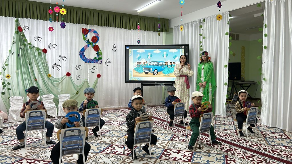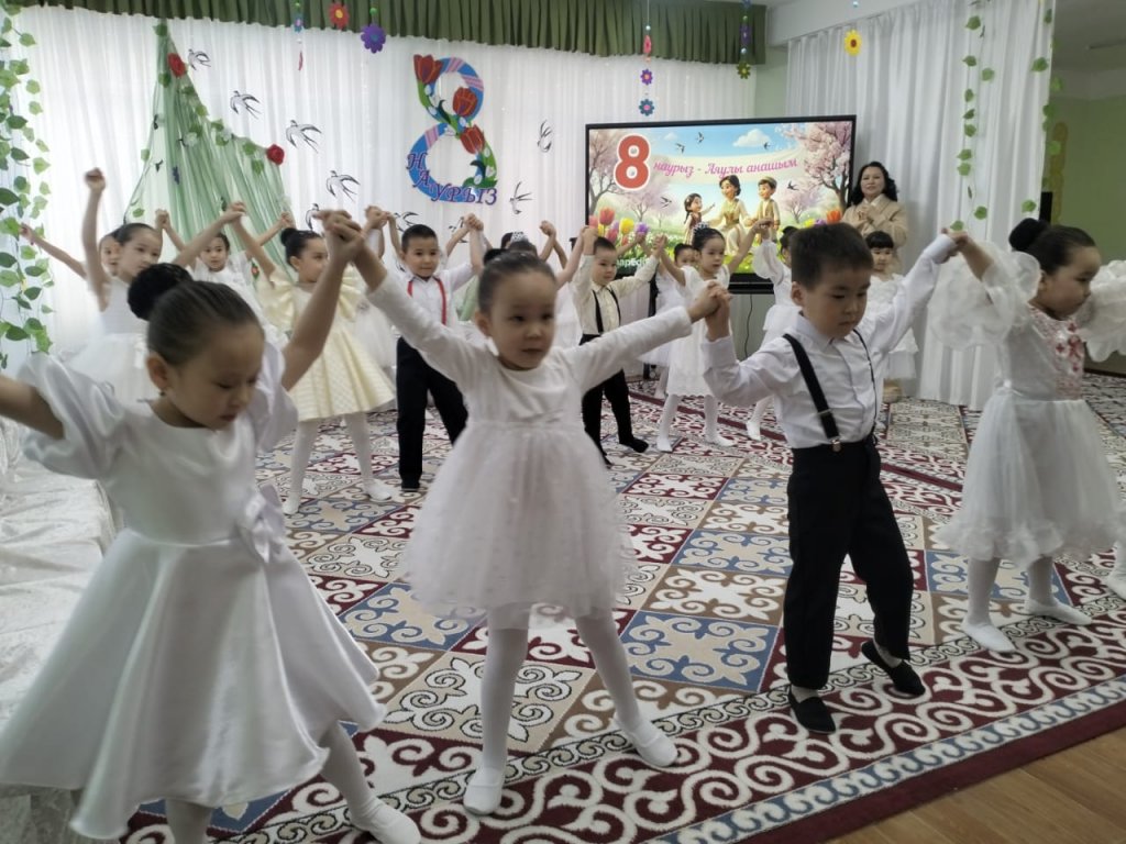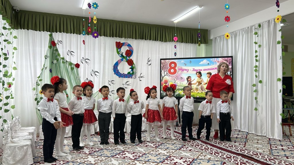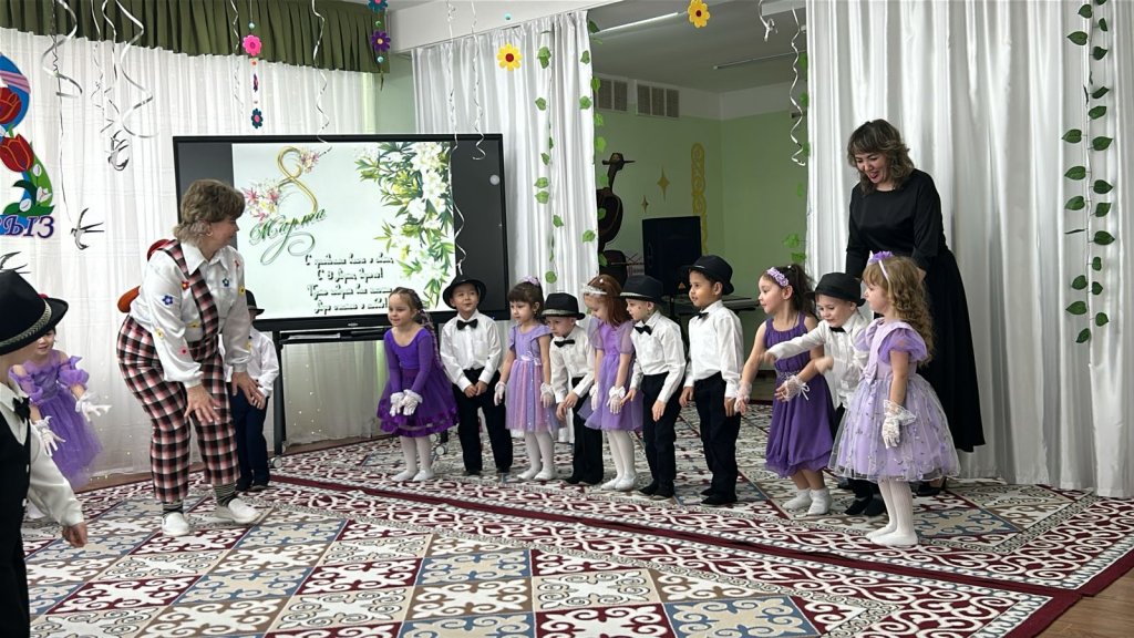 Халықаралық әйелдер күні – 8 наурыз мерекесі қарсаңында балабақшамыздың барлық топтарында мерекелік іс-шаралар өтті. Балалар аналар мен әжелеріне арнап жүрекжарды құттықтаулар, өлеңдер, әндер мен билер дайындап, өз қолдарымен жасаған сыйлықтарын тарту етті. Әсіресе №2 «Балапан» тобында өткен мереке ерекше әсерлі әрі қызықты өтті. Мерекеге ата-аналар белсенді қатысып, әкелер қыздарымен бірге «Әкелер мен қыздар биін» орындады. Бұл көрініс көрермендердің зор қошеметіне ие болып, көпшілікке көтеріңкі көңіл-күй сыйлады. «Балдырған» тобында мерекелік іс-шара ерекше форматта - «Мамочки TV – 2026» атты мерекелік телебағдарлама түрінде ұйымдастырылды. Бағдарлама «Пока все дома», «Большая стирка», «Смак», «Модный приговор», «Шоу Голос» және «Танцы без границ» атты түрлі телебағдарлама айдарлары арқылы көрсетілді. Мереке барысында бейнерепортаждар мен балалардан алынған шағын сұхбаттар ұсынылып, іс-шараны одан әрі қызықты әрі есте қаларлықтай етті. Балалар өз өнерлерін шабытпен көрсетіп, шығармашылық қабілеттерін танытты. Аналар да мерекелік бағдарламаға белсенді қатысып, түрлі қызықты ойындар мен сайыстарға қатысты. Соның ішінде балалар өздерін кішкентай сәнгерлер ретінде көрсетіп, аналарына ерекше сән үлгілерін дайындады. Тіпті ең кішкентай бүлдіршіндердің өзі мерекеге белсене қатысып, ойын ойнап, ән айтып, ата-аналарына шынайы күлкілері мен қуаныштарын сыйлады. Сонымен қатар би нөмірлерінің жоғары деңгейде дайындалғанын ерекше атап өткен жөн. Балабақша хореографының кәсіби жұмысының арқасында билер көркемдік тұрғыдан жоғары деңгейде қойылып, балалар оларды сенімді әрі үлкен ықыласпен орындады. Балабақшаның музыка жетекшілері де мерекенің жоғары деңгейде өтуіне үлкен үлес қосты — балалар әндерді әдемі әрі әсерлі орындап, мерекеге ерекше жылылық пен көңілді атмосфера сыйлады. Балалардың әсерлі өнер көрсетулері аналардың жүрегін тебірентіп, балаларына деген қуаныш пен мақтаныш сезімінен көздеріне жас алды. Мерекелік іс-шаралар жылы, достық әрі қуанышты атмосферада өтіп, барлық қатысушыларға көтеріңкі көңіл-күй, жарқын эмоциялар және көктемгі шаттық сыйлады
